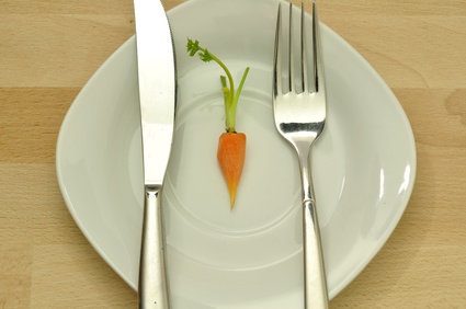 5 kg abnehmen in 2 Wochen? Foto von einem Teller mit einer kleinen Karotte darauf als Zeichen von hungern.