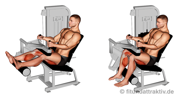 Beinstrecker Übungen findest du im Artikel Beinstrecker Muskel trainieren: Top 4 Übungen.
