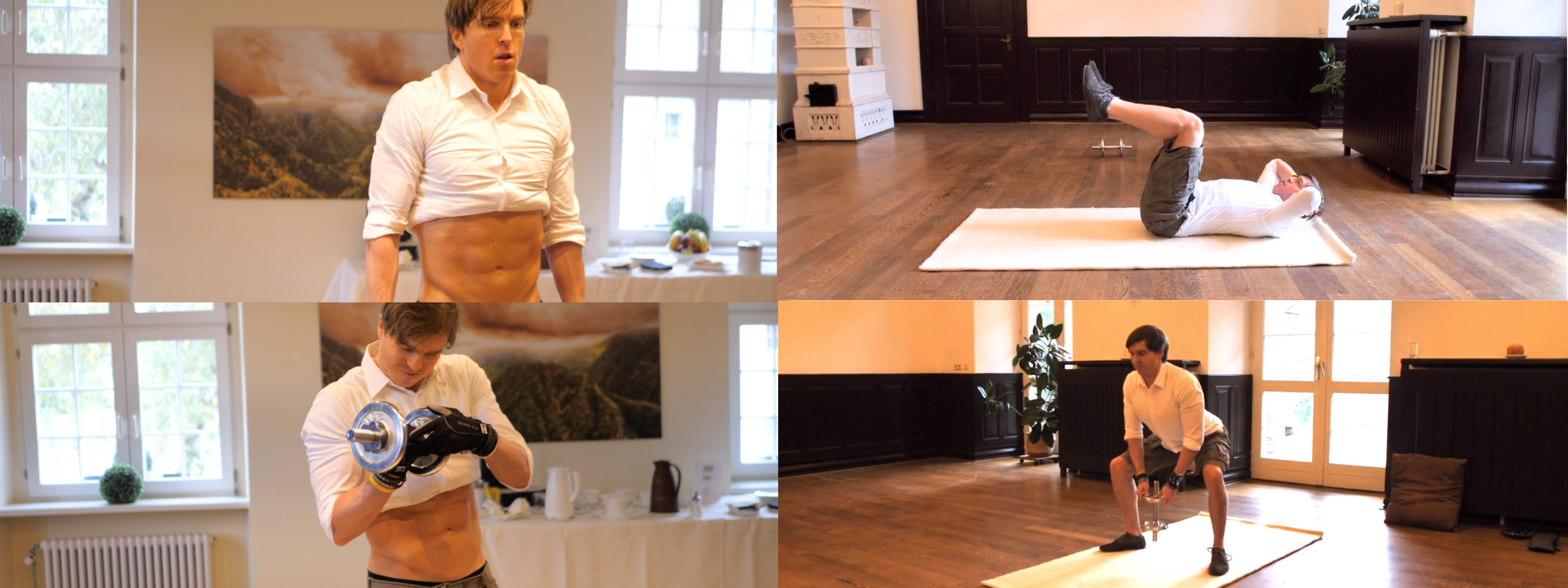- Lösung: Wir haben seine Übungen speziell darauf optimiert, dass Brust und Bauch flach wurden.