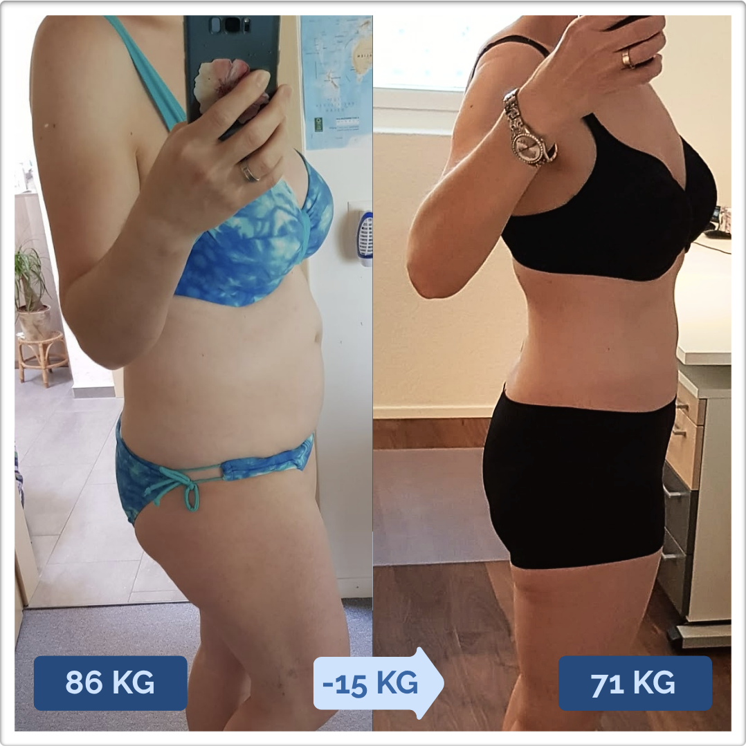 - Andrea über ihr Gewicht vor dem Coaching: "Ich war bei 86,6 kg... und suchte eigentlich eine Lösung die auch hält - obwohl ich's mir eigentlich nicht so zugetraut habe."
