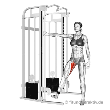 - Zielmuskeln: Wir fokussieren uns hier auf die Abduktoren an den äußeren Oberschenkeln und den seitlichen Pomuskel. Versuche, dich während der Ausführung mental ganz auf die äußere Oberschenkelpartie zu konzentrieren (Mind-Muscle-Connection).