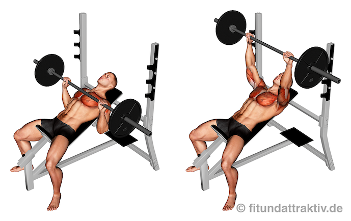 2b) Langhantel Schrägbankdrücken (schwieriger)