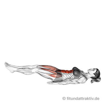 - Haltung: Flache Rückenlage, die Arme liegen entspannt zur Seite.