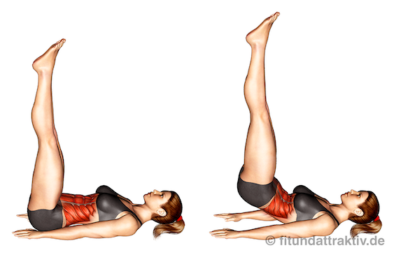 - Zielmuskeln: Diese Übung dient der Kräftigung der unteren Bauchmuskeln bei gleichzeitig geringer Belastung der oberen Bauchmuskulatur.